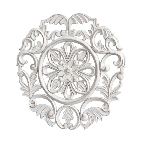 Urbane Crafts Handcrafted Wooden Wall Panels Set of 2 | Floral Medallion Design Decorative Wall Art | Antique White & Black Finish Home Décor Accent for Living Room, Bedroom & Hallway