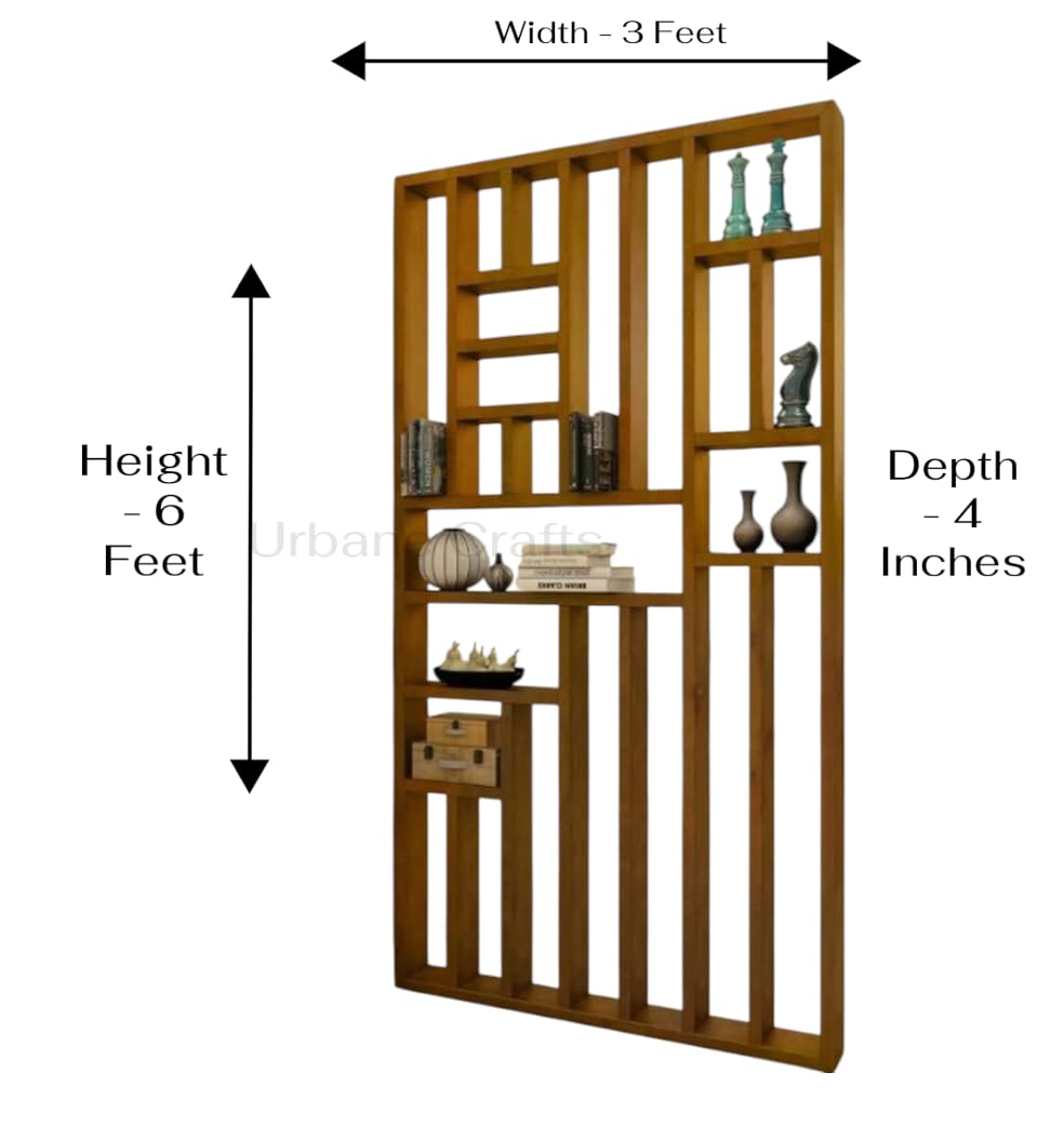 Urbane Crafts Solid Mango Wood Room Divider with Shelves & Geometric Design | Multi-Purpose Wooden Display Rack for Living Room, Bedroom & Office | Partition Stand for Home DĂ©cor â Natural Finish